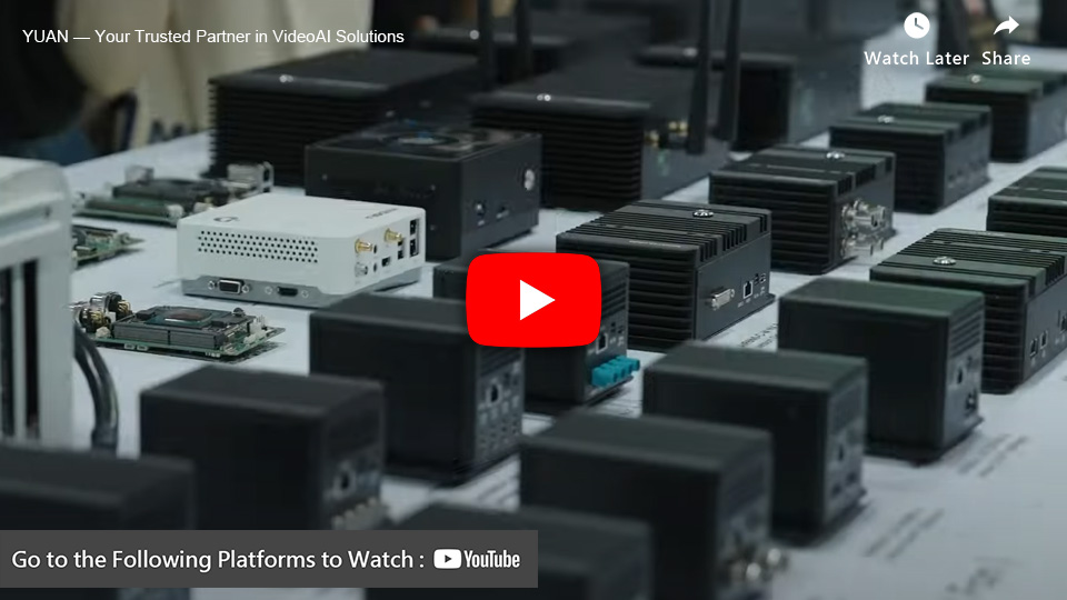 YUAN 的智能影像處理平台具備影像採集、錄影、串流和分析功能。以 NVIDIA® Jetson Orin™ 為驅動,搭載 YUAN 開發的 NexVDO SDK 工具包,形成強大的智能影像解決方案,更大幅降低開發門檻,幫助客戶快速進入 AI 市場。該產品系列提供從 100 到 1705 TOPS 的智能算力服務,能廣泛應用於各種領域,YUAN 也提供客製化 VideoAI 解決方案,滿足各行業需求。